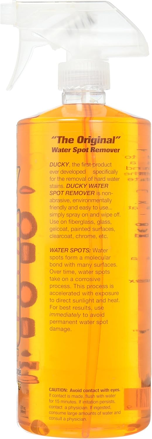 Ducky water spot remover review. Boat juice exterior cleaner ceramic sio2 sealant water spot remover gloss enhancer pina colada scent 32oz sprayer bottle 4 3 out of 5 stars 122 19 99 19. I tried everything to remove it lime away hard water remover of other brands regular cleaner and nothing worked. Quick and easy to use. To combat this problem ducky products has developed four very different hard water spot removers.