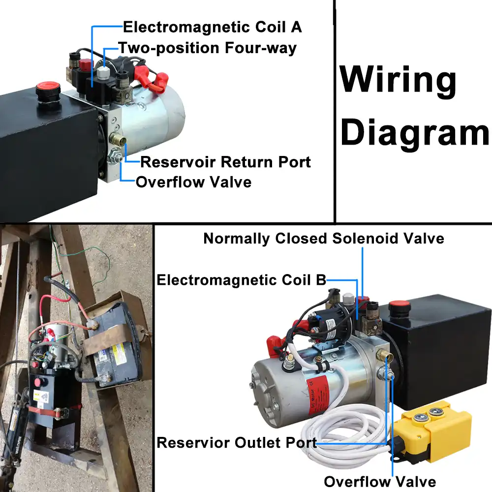 Dump truck 12 volt hydraulic pump wiring diagram. This report will be discussing dump trailer hydraulic pump wiring diagram. For 12 vdc hydraulic power units double acting power up power down diagram a 1. How do hydraulics work. Torque fittings to 18 lb ft.