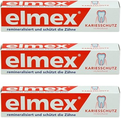 Elmex sensitive toothpaste 75ml 3 pack caries protection toothpaste with amine fluoride 3 x 75ml elmex toothpaste junior 6 12 years old 2x75ml 2x2 5oz by elmex. Easy to remove and even easy to prevent by alternating elmex with another slightly more abrasive paste. Our products at a glance. Search by indication overview.